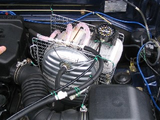 ボンネットの中を見せてもらうと湯たんぽが目に入った